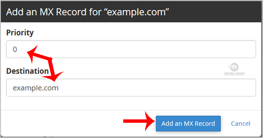 5. Now click the Add an MX Record button.