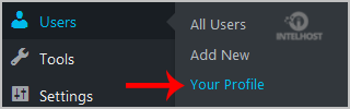 2. Under the dashboard menu, hover your mouse over Users and then click on Your Profile.