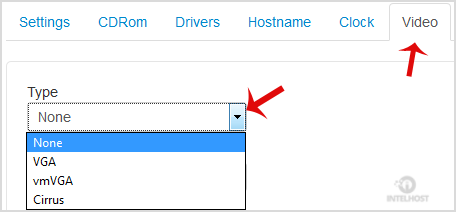 1. Scroll down, and under the video tab, change the type from the drop-down menu to the appropriate video type and then reboot your VPS.