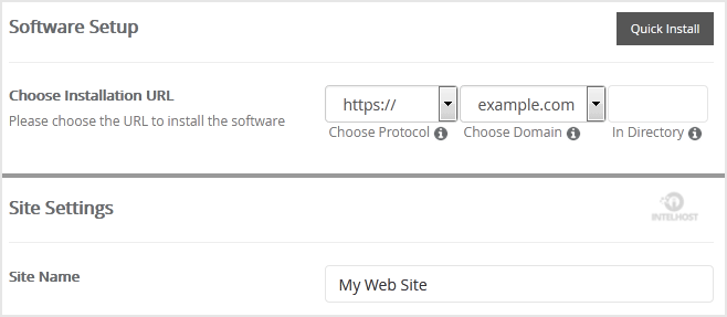 - Choose Installation URL: Choose the appropriate protocol/domain. Inside the «In Directory» field, should you want to install this in a directory, i.e., example.com/directory, enter the directory name. Otherwise, leave it blank to install in your main domain, i.e., example.com