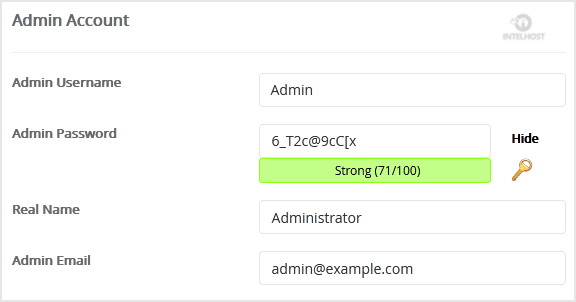 8. Under the Admin Account field, enter the following information: