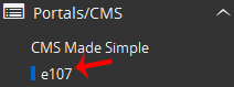 4. On the left side of your screen, you should locate the Portal/CMS category. Click on it and then click on the e107 link that will appear.