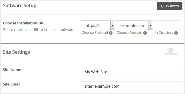 - Choose Installation URL: Choose the appropriate protocol/domain. Inside the «In Directory» field, should you want to install this in a directory, i.e. example.com/directory, enter the directory name. Otherwise, leave it blank to install in your main domain, i.e. example.com