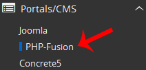 4. On the left side of your screen, you should locate the Portal/CMS category. Click on it and then click on the PHP-Fusion link that will appear.