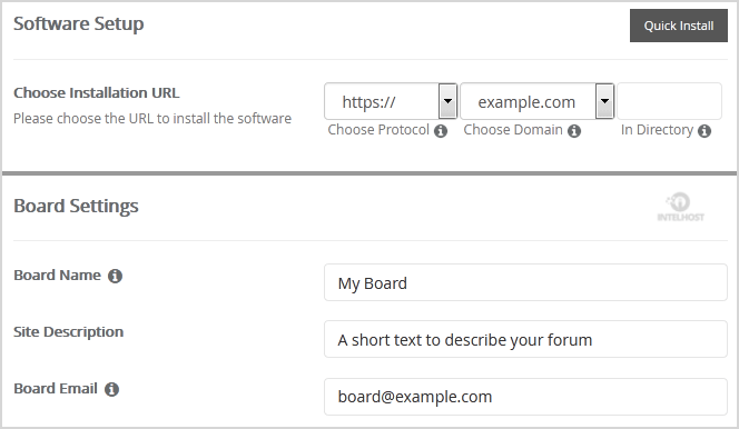 • Choose Installation URL: Choose the appropriate protocol/domain. Inside the «In Directory» field, should you want to install this in a directory, i.e., example.com/directory, enter the directory name. Otherwise, leave it blank to install in your main domain, i.e., example.com