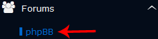 4. On the left side of your screen, you should locate the Forums category. Click on it and then click on the phpBB link that will appear.