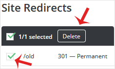 3. Under Local URL Path, Select the redirect entry you wish to remove.